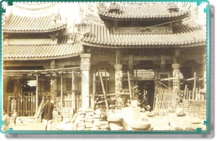 整建中的祖師廟 (照片來源:三峽鎮公所編印(87年6月30日),認識三峽(國小版)─史蹟篇,頁60) |